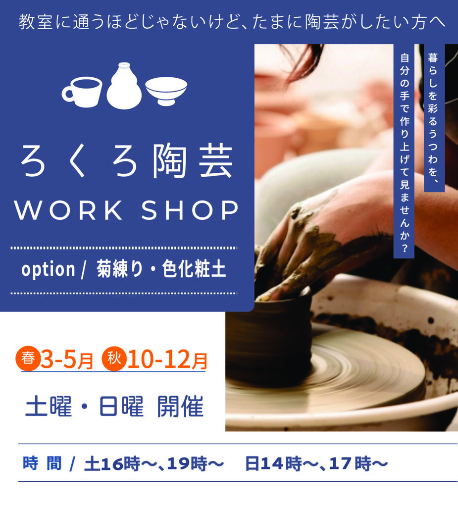 - 組物(急須や蓋物)は手ろくろ体験可、電動ろくろ体験は不可。